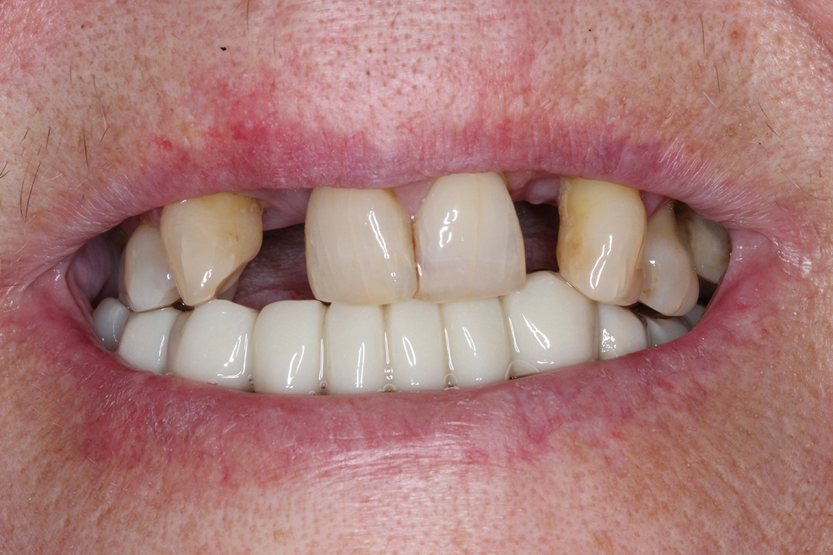 Bei unserer Patientin handelt es sich um eine Frau in den Sechzigern, deren Zahnbrücke durch einen Unfall zerbrochen ist.